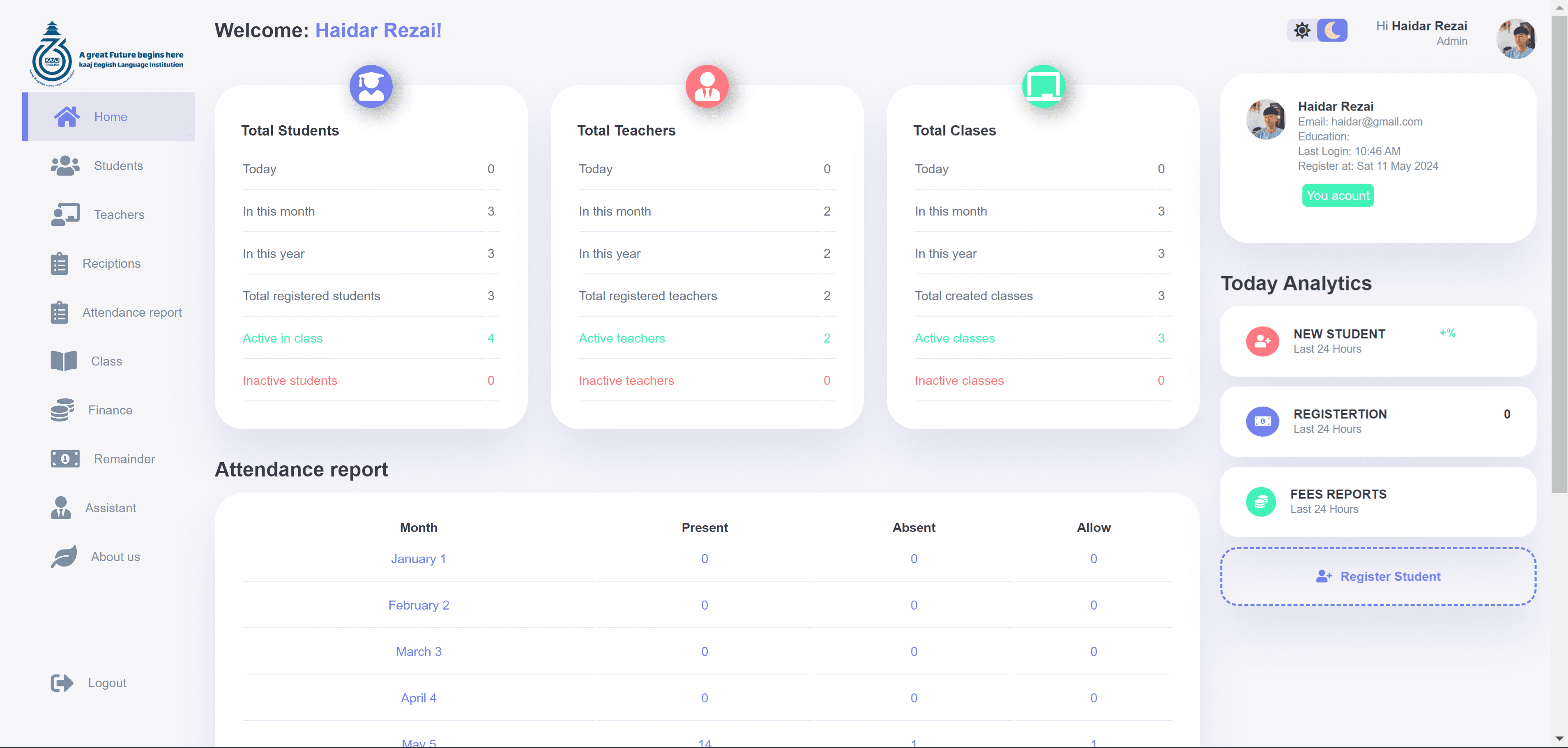 Daily Attendance Tracking: Monitor daily attendance for each class.